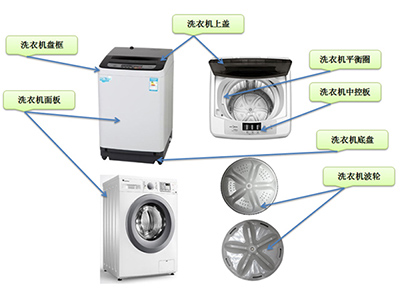 普立隆所做产品在洗衣机方面主要应用于:洗衣机外壳、洗衣机中控板、洗衣机上盖、洗衣机盘框。